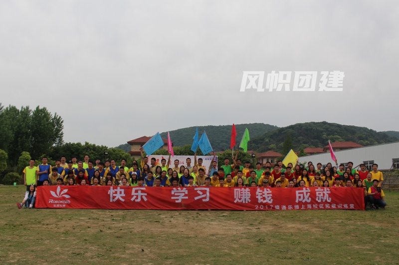 「快乐 赚钱 ,学习 成就」为主题的户外拓展活动。